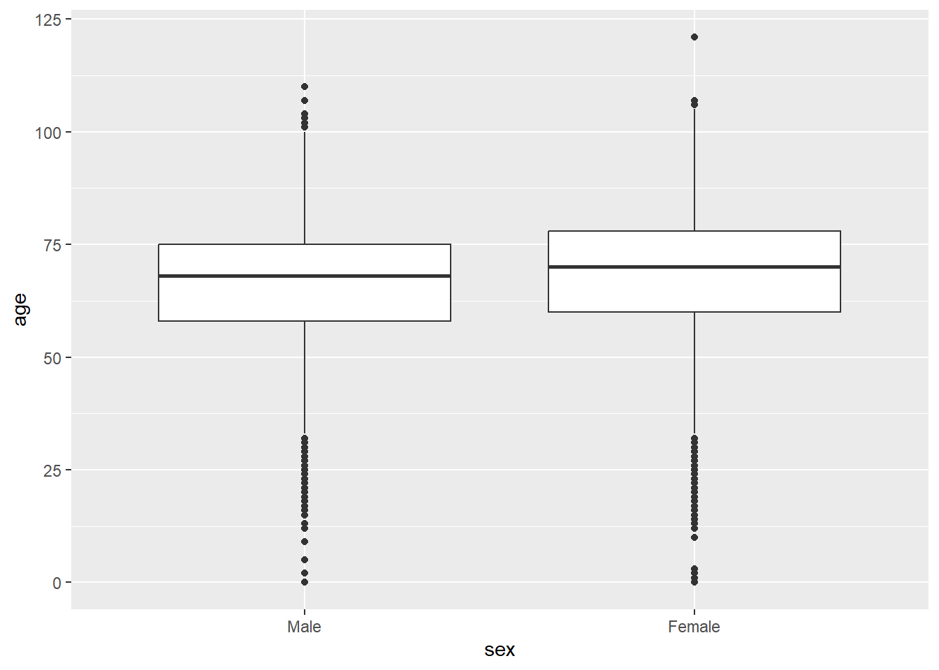 mortality_df |> group_by(sex) |> summarize(mean(age), sd(age))# A tibble: 2 × 3