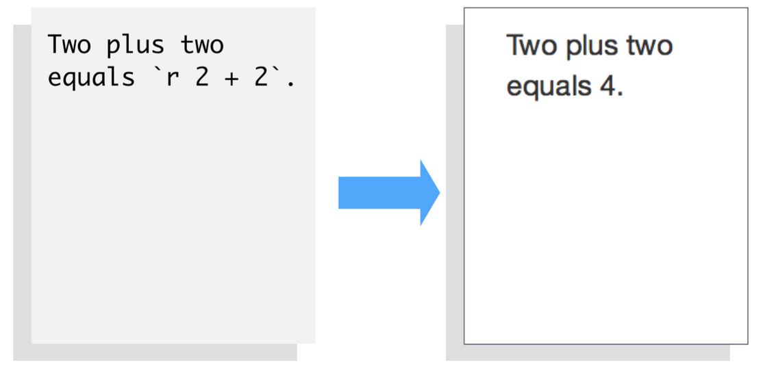 knitr will replace the inline code with its result in your final document (inline code is always replaced by its result). The result will appear as if it were part of the original text. For example, the snippet above will appear like this: