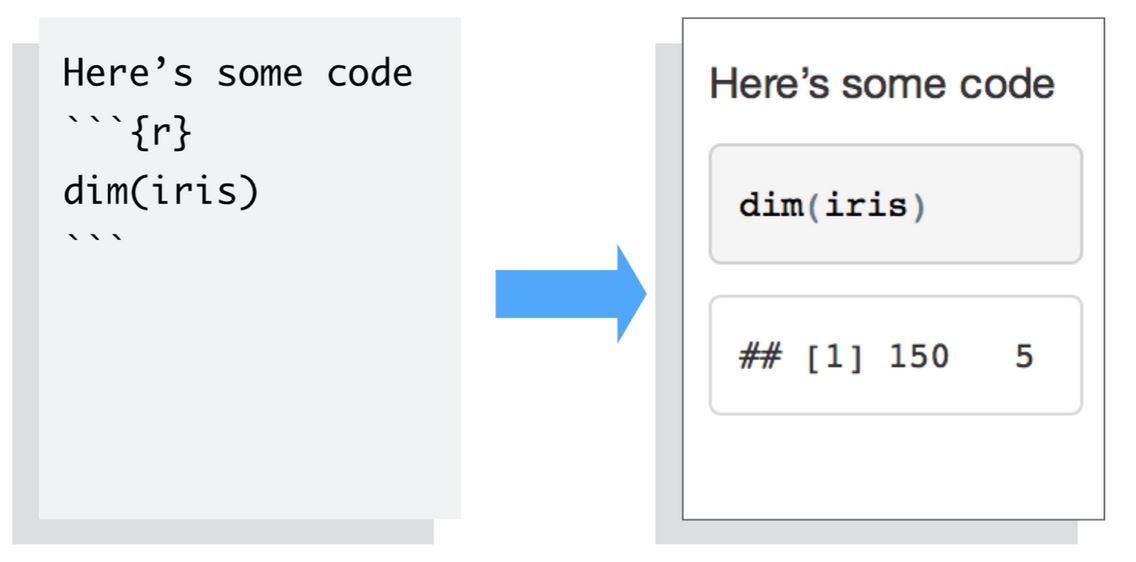 The knitr package extends the basic markdown syntax to include chunks of executable R code.